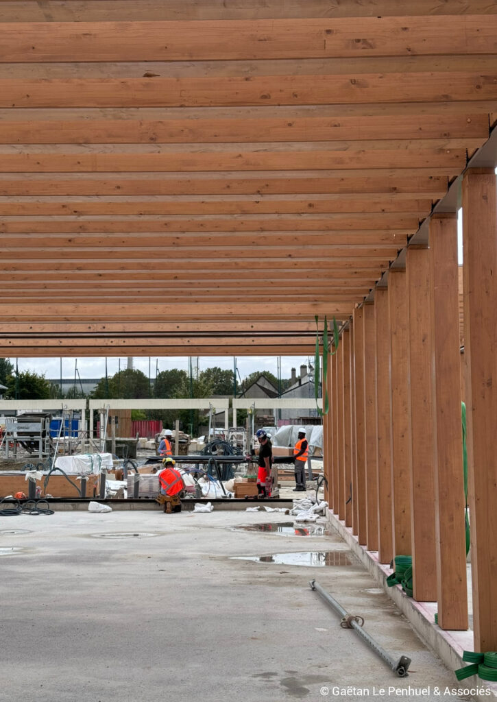 Le chantier s’est déroulé en 18 mois, délai court pour ce type d’ouvrage reposant sur une conjugaison de matériaux élaborée. L’anticipation des justifications techniques par le bureau d’études, ainsi que l‘association en un macro-lot du gros-œuvre et de la structure bois ont été deux facteurs clés dans cette réussite.